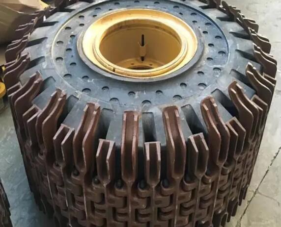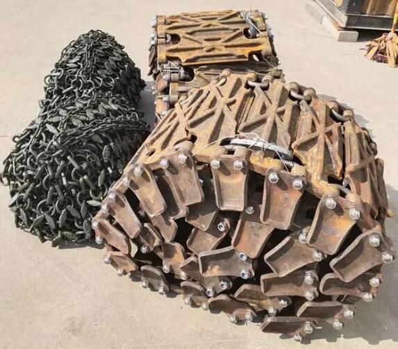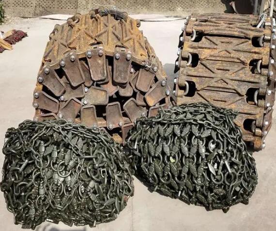 50铲车轮胎也有保护履带了,可以装在轮胎上的履带,是由钢厂锻打而成,分为27节链板,装在50铲车的轮胎上,可以有效保护轮胎,可以在钢厂钢渣,矿山的矿石上行驶,有效保护了轮胎免于钢渣的扎伤,烫伤。